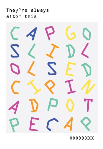 So without any explanation (for now), here are the prototypes for some letter-based puzzles I am presenting at an upcoming L.A. Puzzle Party.