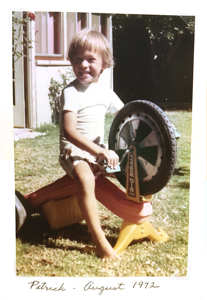 I vividly remember the day in this photo, even though it was lost to me until I saw the picture again after many decades. I remember seeing the handlebars and noting their symmetry and how flat they were. In my mind I was already thinking that this would be a stable toy even upside down. So upside down it went.